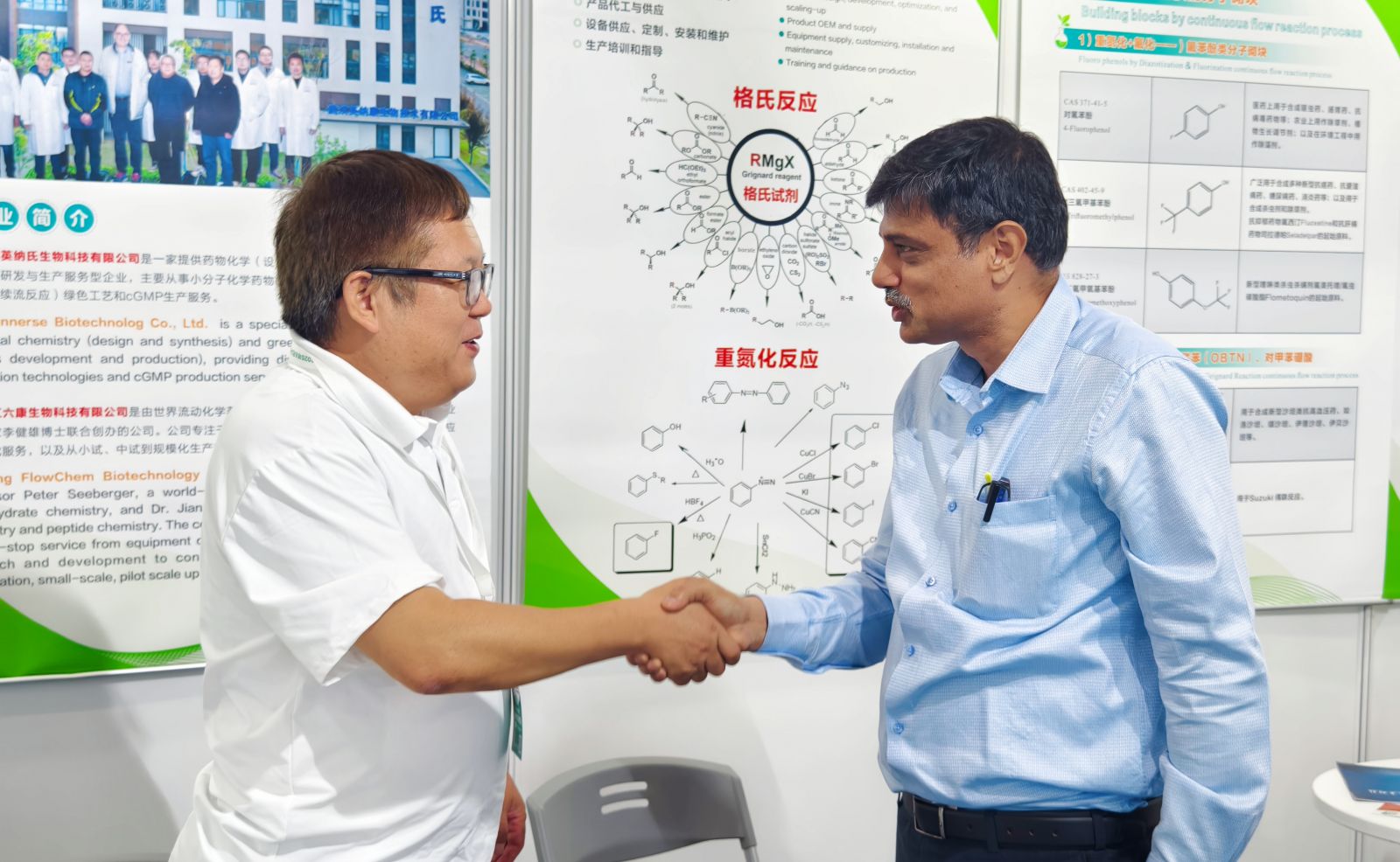 隨著制藥行業對高效、安全、綠色生產的需求日益增長,流動化學技術因其反應精準控制、放大效應小、安全性高等優勢,成為現代藥物合成的關鍵技術之一。英納氏生物與六康生物作為國內該領域的先行者,此次展出了涵蓋微反應器設計、連續流工藝開發等全鏈條解決方案,助力客戶實現從實驗室到工業化生產的無縫銜接。